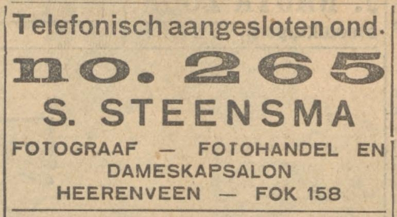 fotohandel en dameskapsalon, telefoon 265