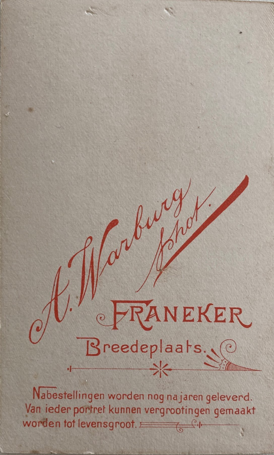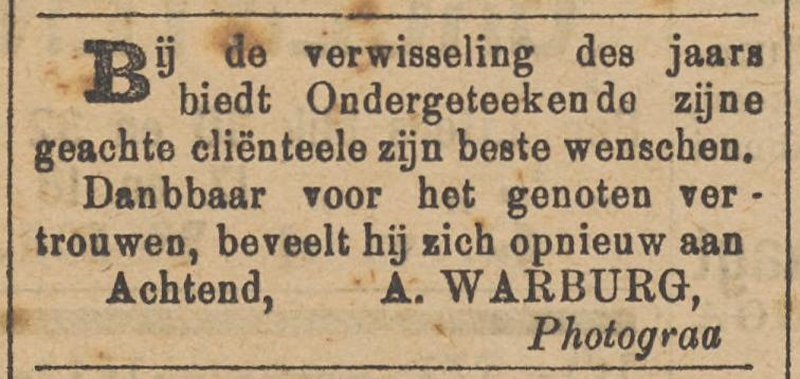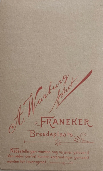 | Motivering | - | Abraham Warburg is fotograaf in Franeker geweest van 1897 tot 1903 |