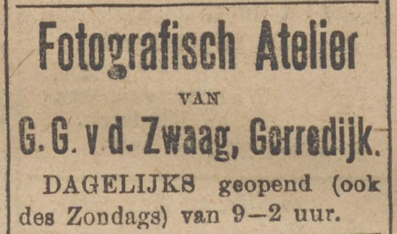 Waarschijnlijk Gabe van der Zwaag, geboren 15 augustus 1882. Zoon van Geert Lourens van der Zwaag en Catharina Gabriels Faber.