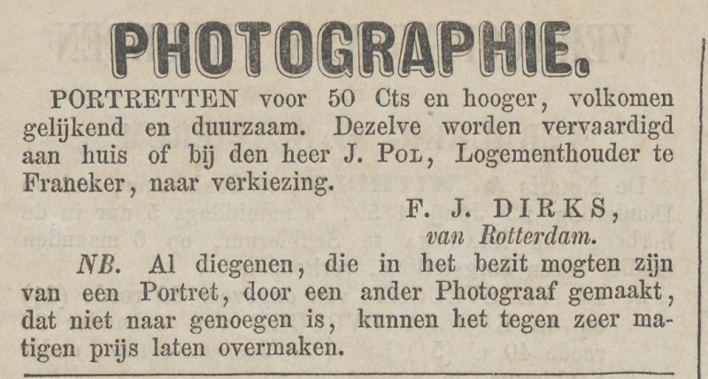 Fotograaf in Rotterdam, in 1859 werkzaam in Franeker.