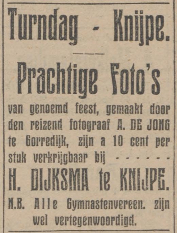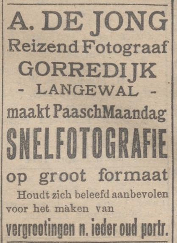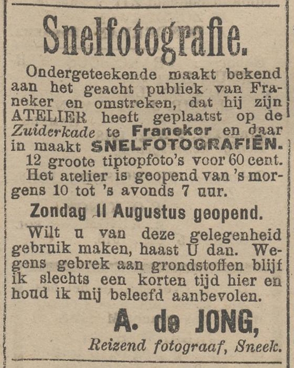 Reizend fotograaf te Gorredijk, later in Oldeboorn en Sneek.