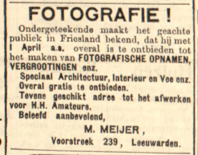 Deze site bevat werk- en woonadressen van (voornamelijk) Friese fotografen voor 1945, bedoeld als hulpmiddel voor de datering van oude (familie)foto's.