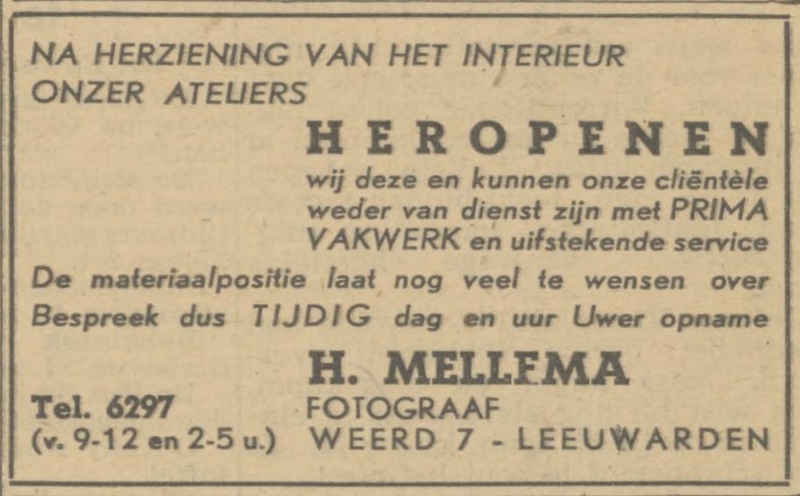| 1938 | - | Weerd 7, Leeuwarden |