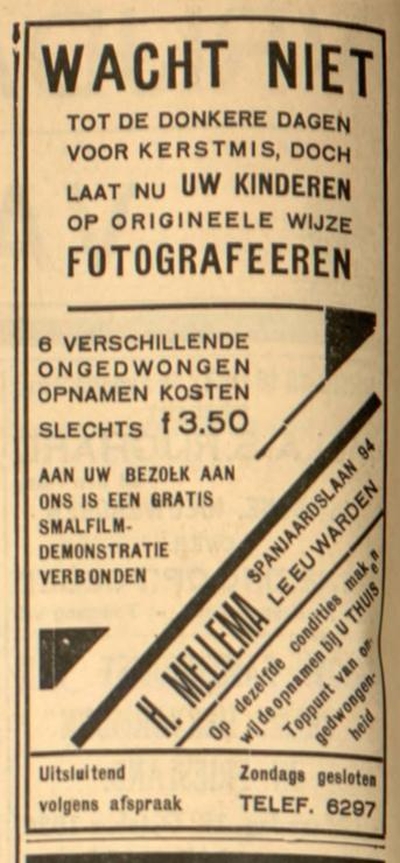 | 1931 | - | Spanjaardslaan 94, Leeuwarden. |