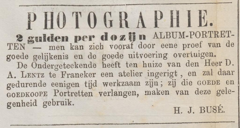| 1873 | - | Leeuwarden. fotograaf in Leeuwarden met filialen in Bolsward, Franeker en Workum |