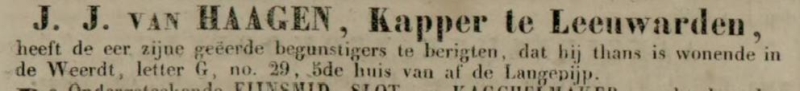 1845 - kapper in de Weerd te Leeuwarden