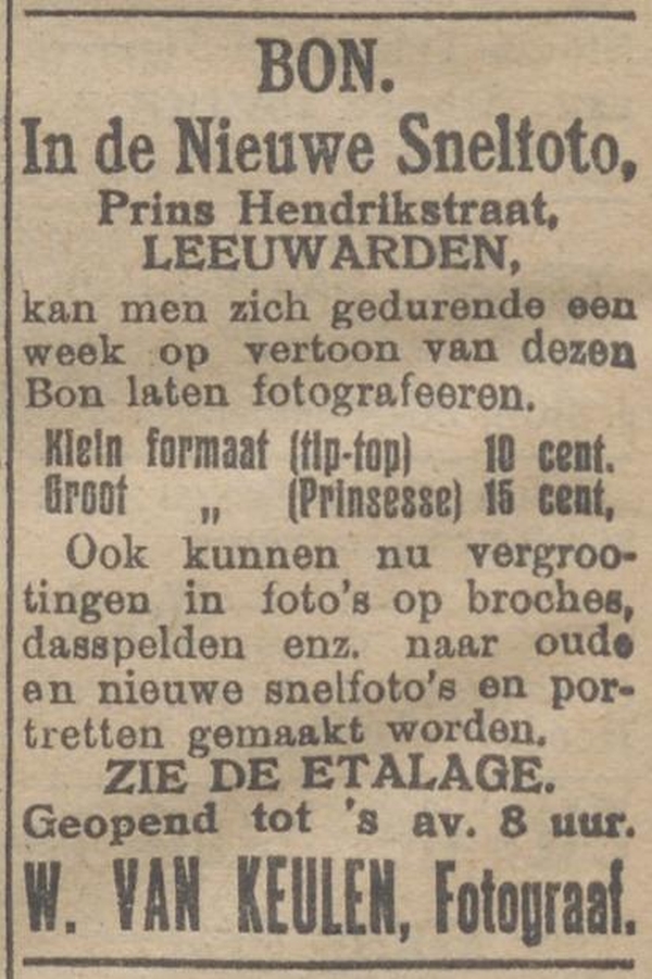1913 - "snelfotograaf" te Leeuwarden (reizend, verschillende adressen)